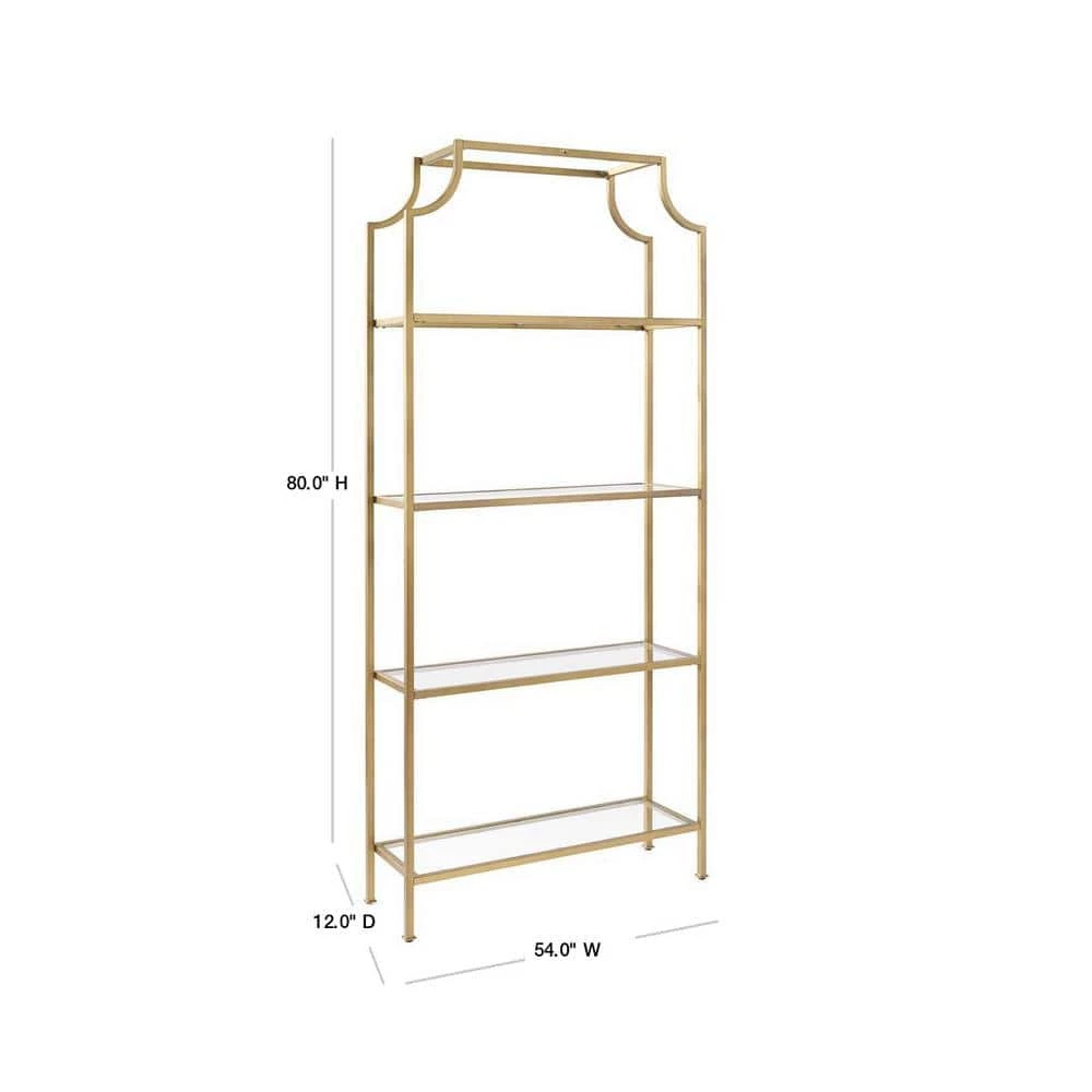 Stylish and modern, the Aimee tagre is an eye-catching addition to any home. A sturdy steel frame with pagoda-styling creates visual interest that can be paired with a variety of decor. The Aimee tagres open, tempered glass shelves are perfect for display and organization without overwhelming the room.
