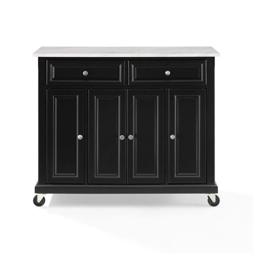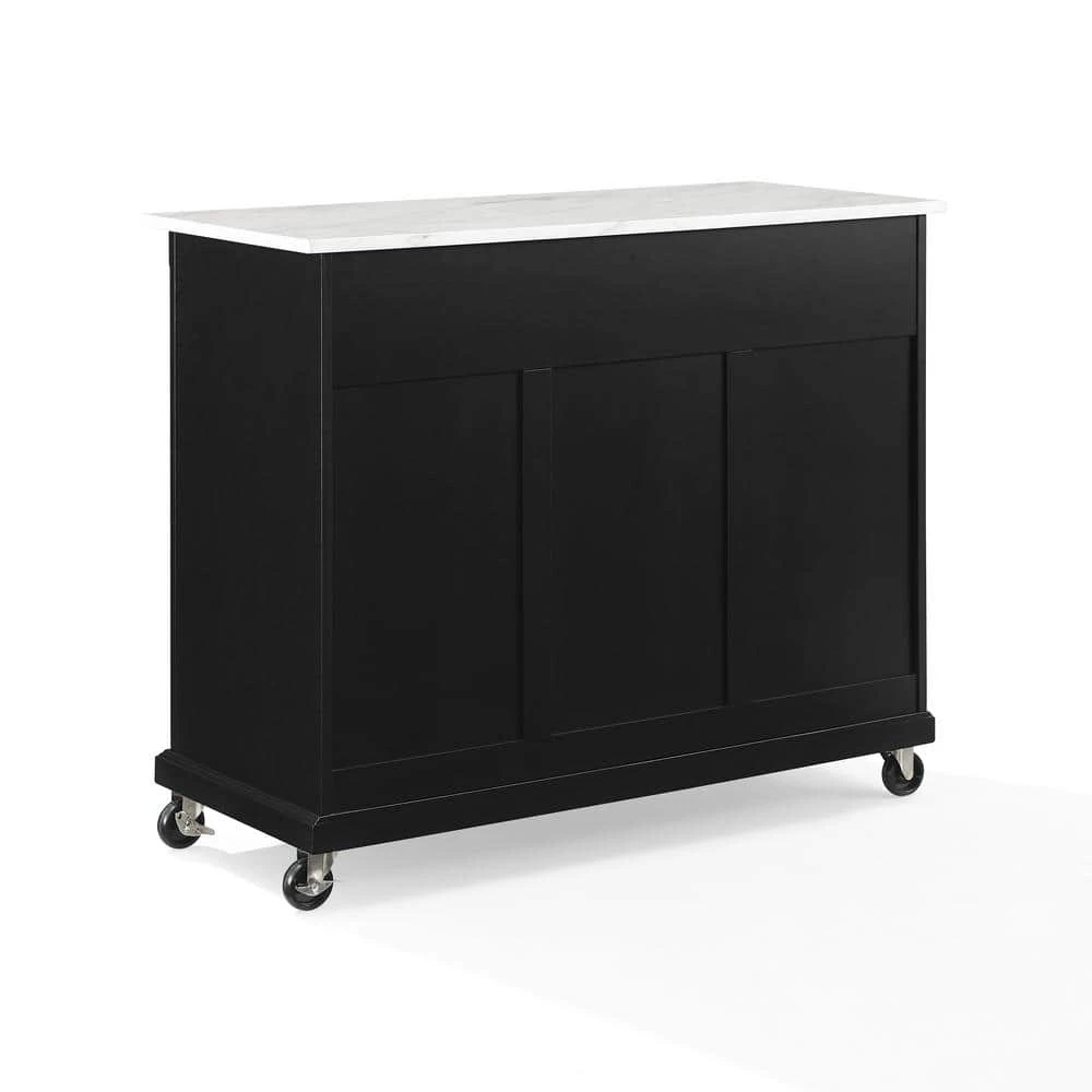 Bring elegance and function to your kitchen with the Avery Kitchen Island/Cart. Featuring a beautiful faux-marble countertop, this island is ideal for food prep or buffet-style serving. 2-large drawers keep utensils and small kitchen items organized, while 3-cabinets with adjustable shelves are perfect for tucking away pots and pans. Both casters and feet are provided for your choice of a stationary island or a rolling cart, making the Avery Kitchen Island/Cart a wise addition to your kitchen space.