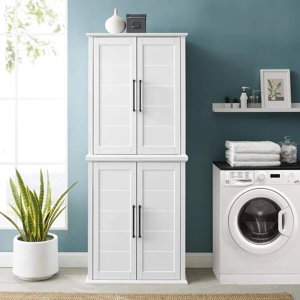 With the popular look of modern farmhouse shiplap, the Bartlett Tall Storage Pantry is an on-trend take on home organization. Comprised of two identical stackable pantries, this set is connected with a sturdy metal plate, offering ample storage without taking up valuable floor space. Each cabinet features adjustable shelves that will accommodate dishes, linens, office supplies, and more. With stylish oversized hardware, the Bartlett Tall Storage Pantry adds polish to your kitchen or dining room.