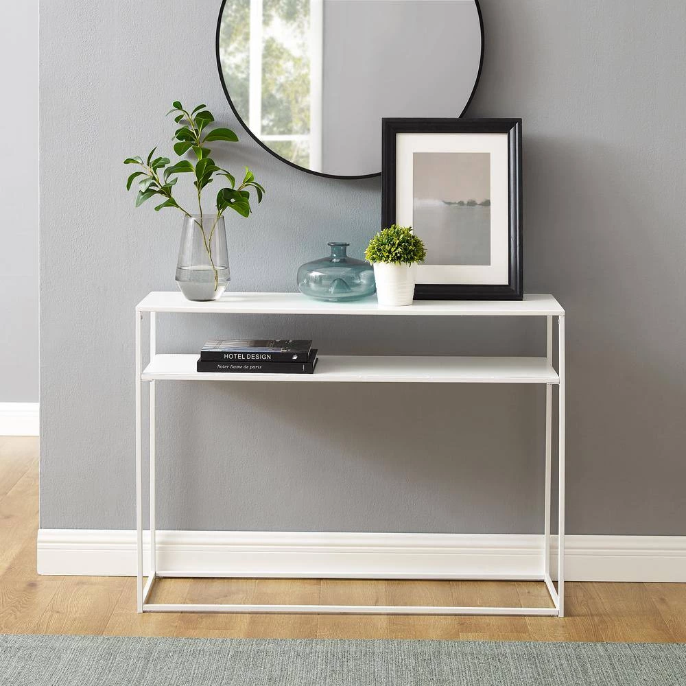 Simple and streamlined, the Braxton Console Table is an ideal addition to your entryway or living room. With clean lines and sturdy steel construction, this console table offers display space and storage without overwhelming your space. The perfect spot for your favorite books or house plants, the Braxton Console Table’s slim frame will blend seamlessly with your home’s decor.