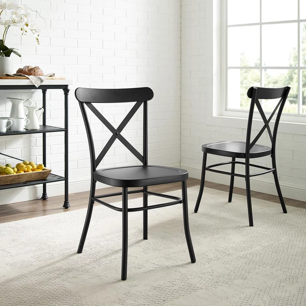 Inspired by the French industrial revival, the Camille Chair Set is a refreshing take on caf seating with its open X-back design. Constructed of solid steel, this chair set combines quality materials with a thoughtful design. Perfect for daily use or as additional seating for parties, the Camille Chair Set is both stylish and versatile.