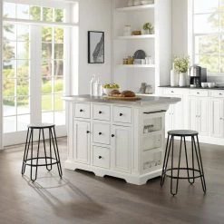 The Chloe Kitchen Island/Cart is ideal for adding extra counter space to your kitchen with its sleek modern design and stainless steel countertop. Featuring 2-large full-extension storage drawers with recessed metal drawer pulls and two open shelves, this island provides much-needed storage to your meal prep routine. The slatted design of the Chloe Kitchen Island’s center shelf is perfect for storing wine bottles, while the sturdy caster wheels add mobility, creating a serving space ready to adapt to your needs.
