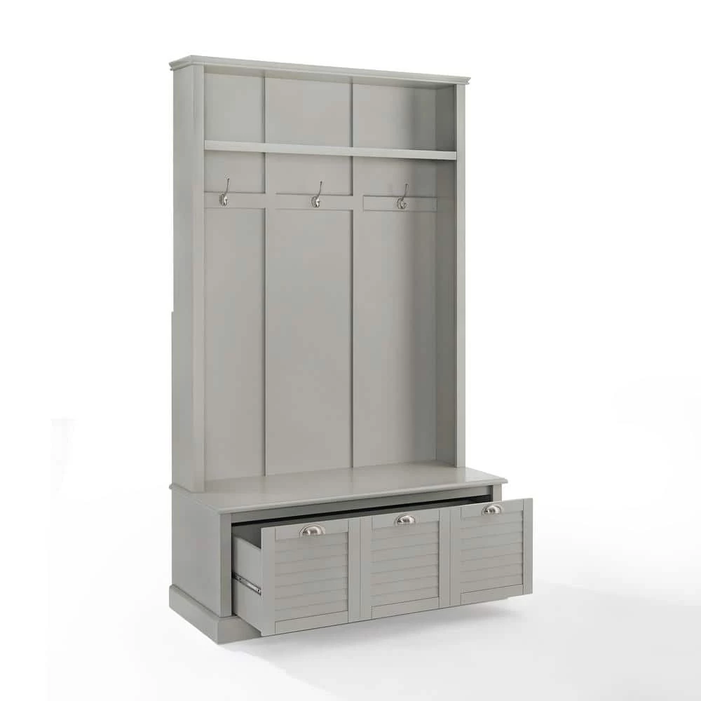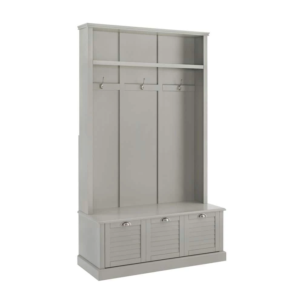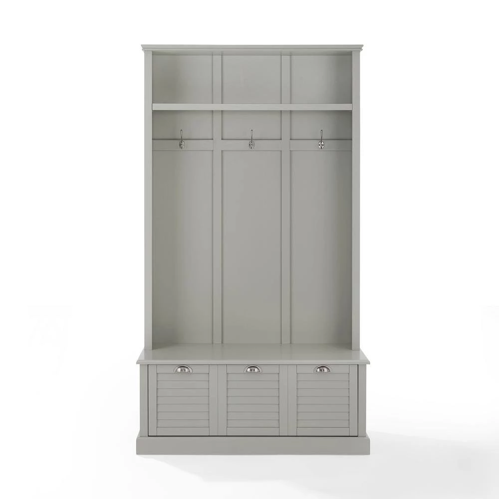 Keep your home’s entryway tidy and organized with the classic Ellison Hall Tree. Featuring louvered accents on the bottom drawer and raised paneling on the back, this hall tree makes home organization look good. Hang your coat and hat on one of the three double-pronged hooks, then take a seat on the bench to remove your shoes at the end of the day. Once off, you can tuck your shoes in the pull-out storage drawer in the base and use the display shelf at the top for smaller items like keys and sunglasses. Whether you’re coming or going, the Ellison Hall Tree will keep all your everyday items close at hand.