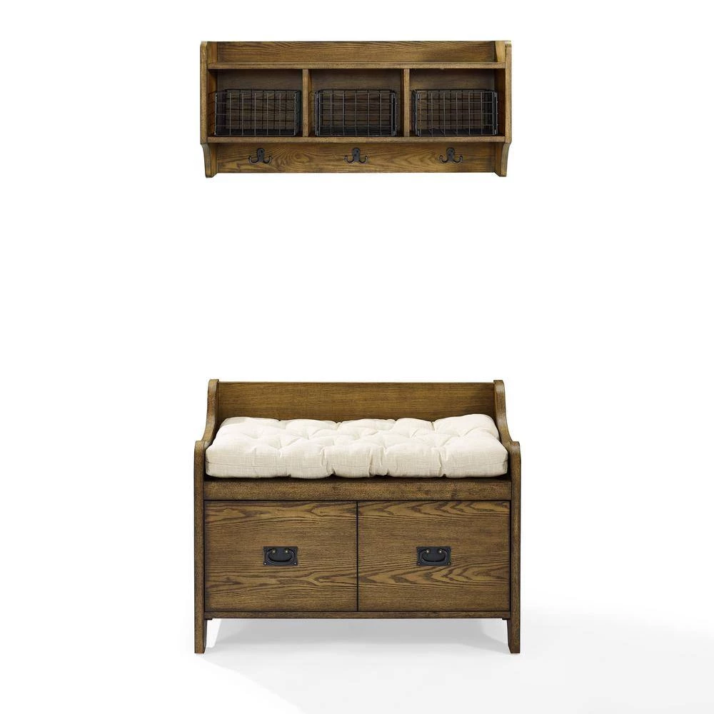 Keep your entryway clutter-free with the Fremont Entryway Kit. This two-piece kit includes a shelf and a bench. The shelf offers three coat hooks and three galvanized wire baskets for storage. The bench adds extra seating, as well as, two easily accessible storage cubbies accented with antique hardware. This kit can be easily paired with the rest of the Fremont Collection.