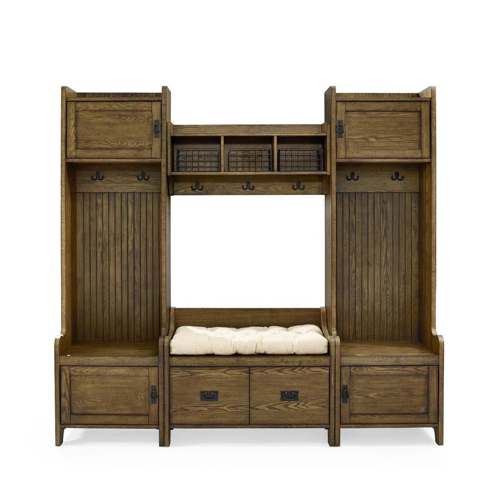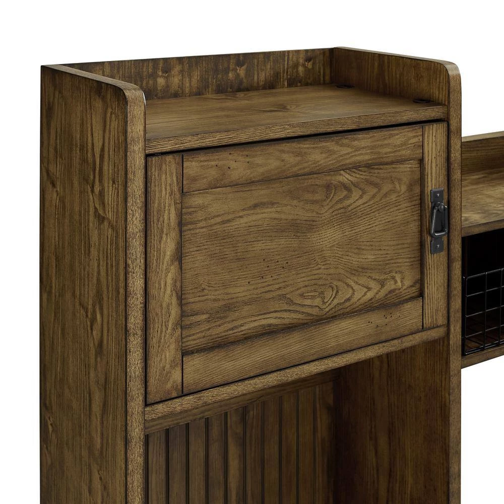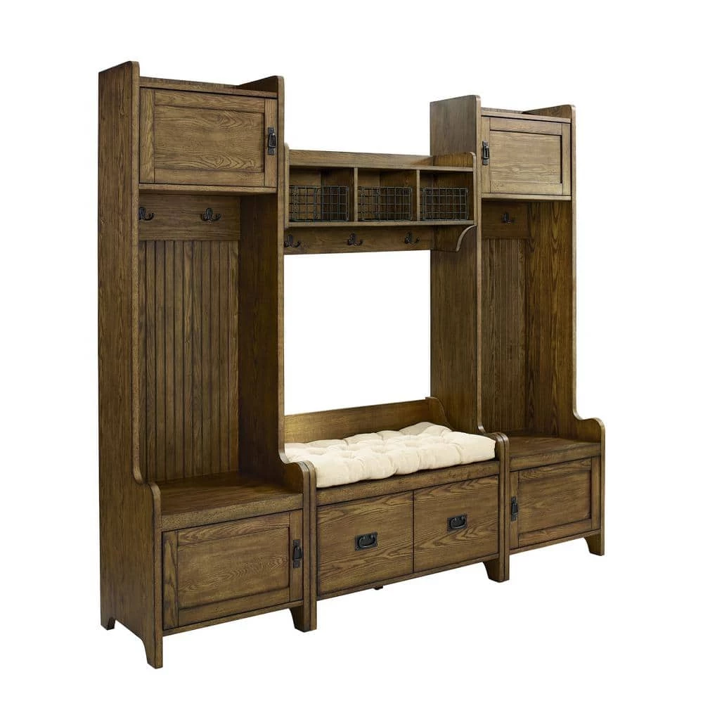 Keep your entryway clutter-free and organized with the Fremont Entryway Kit. This four-piece kit includes two towers, a bench and a shelf. The towers offer multiple coat hooks, an easy to slide storage cubby, an elevated swing door storage space and top shelf storage. The shelf has three coat hooks and three galvanized wire baskets. The bench adds extra seating, as well as, two easily accessible cubbies accented with antique hardware. This kit can be easily paired with the rest of the Fremont Collection.