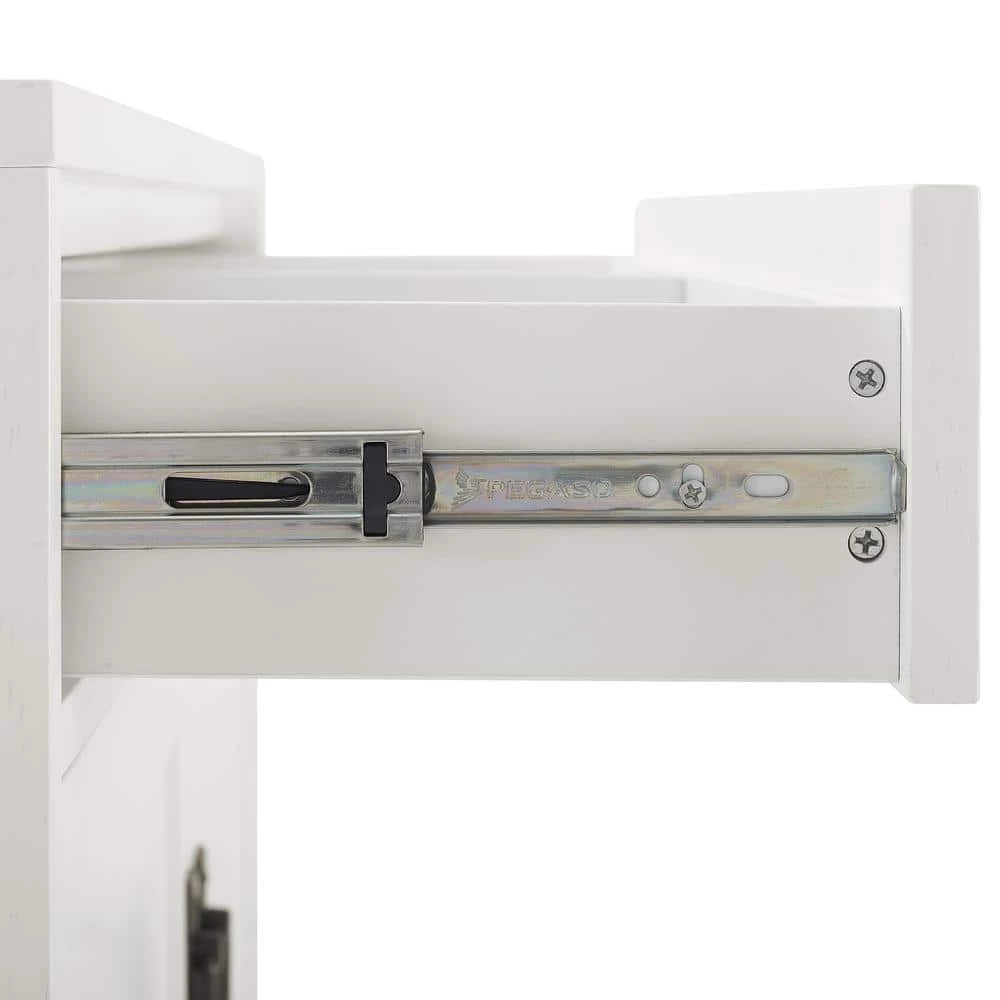 - Full-extension storage drawer on ball-bearing glides in accent cabinet