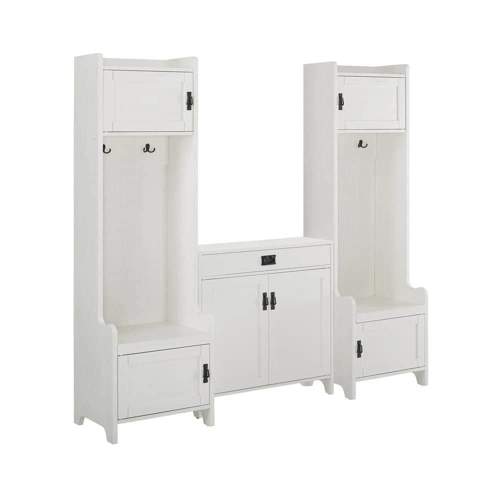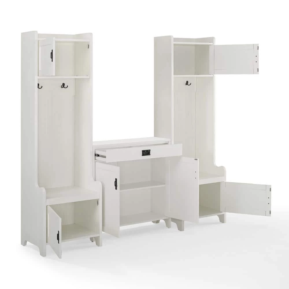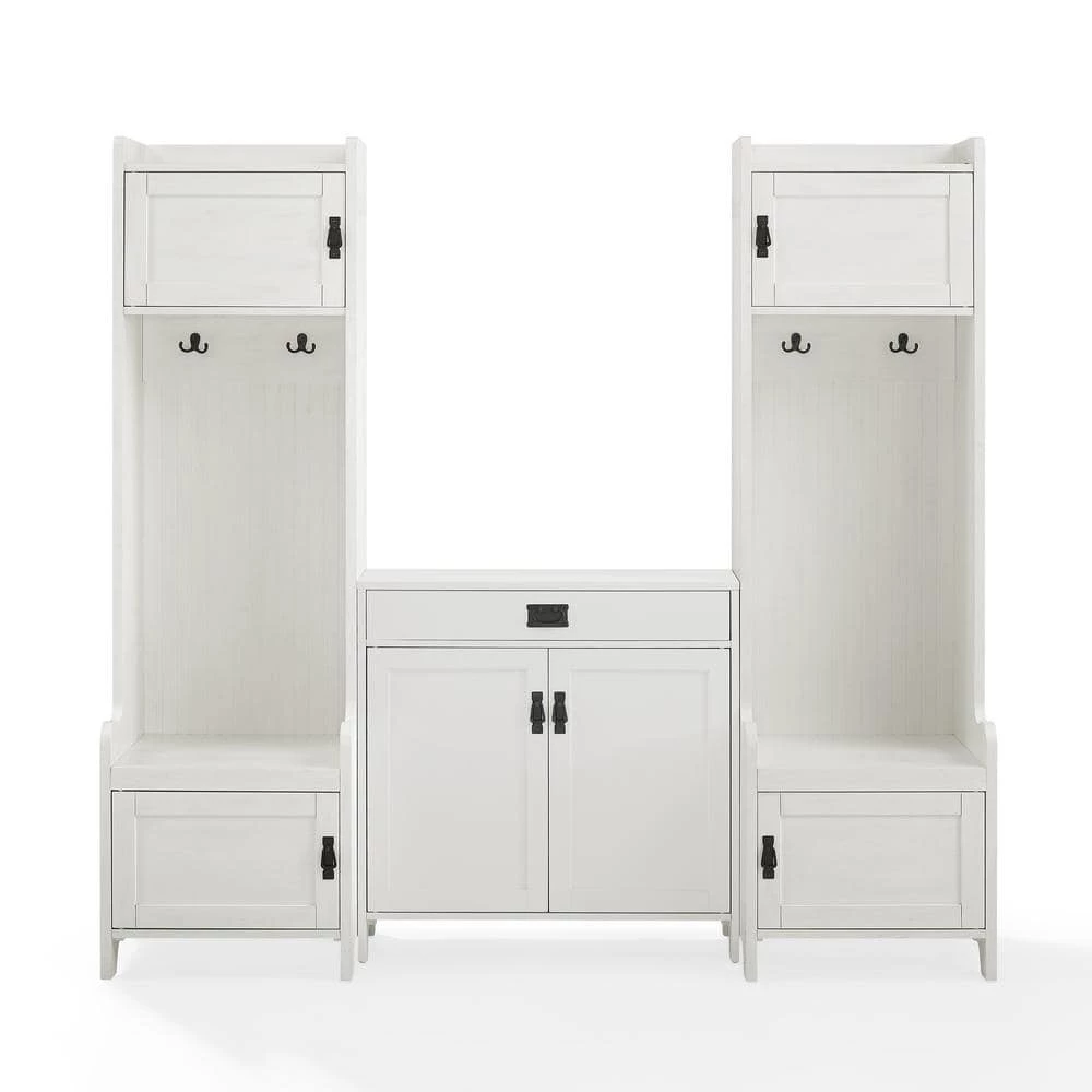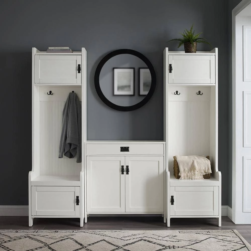 Craft the ultimate landing zone in your foyer or mudroom with the Fremont 3-Piece Entryway Set. The included accent cabinet features an adjustable shelf and a full-extension drawer on ball-bearing glides, offering storage for everything from shoes to car keys. Add in the two entryway towers on either side and you get two seats for slipping off shoes at the end of the day, plus four double prong hooks for hanging coats, hats and scarves. The towers also feature two cabinets a piece for tucking away everyday items such as book bags and school supplies. The Fremont 3-Piece Entryway Set manages the clutter of a bustling household with ease and style.