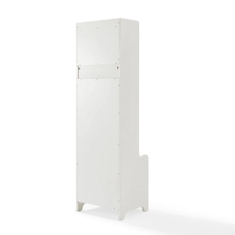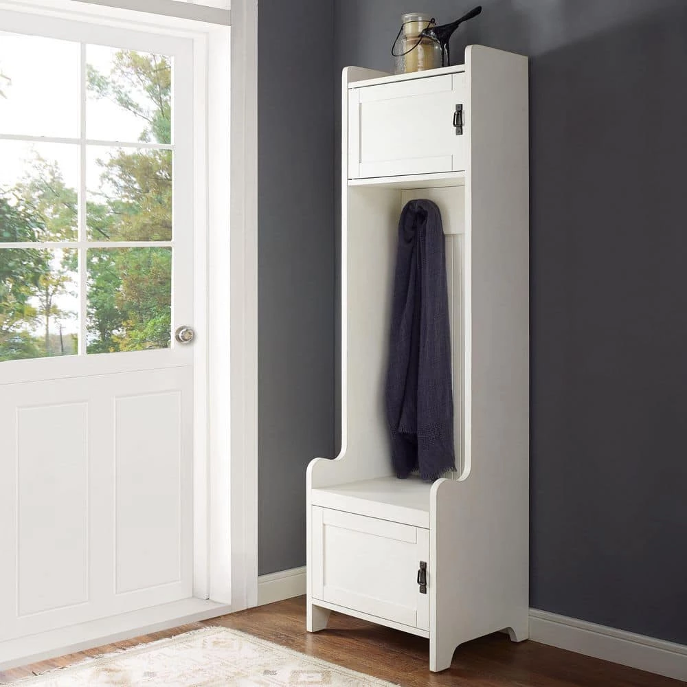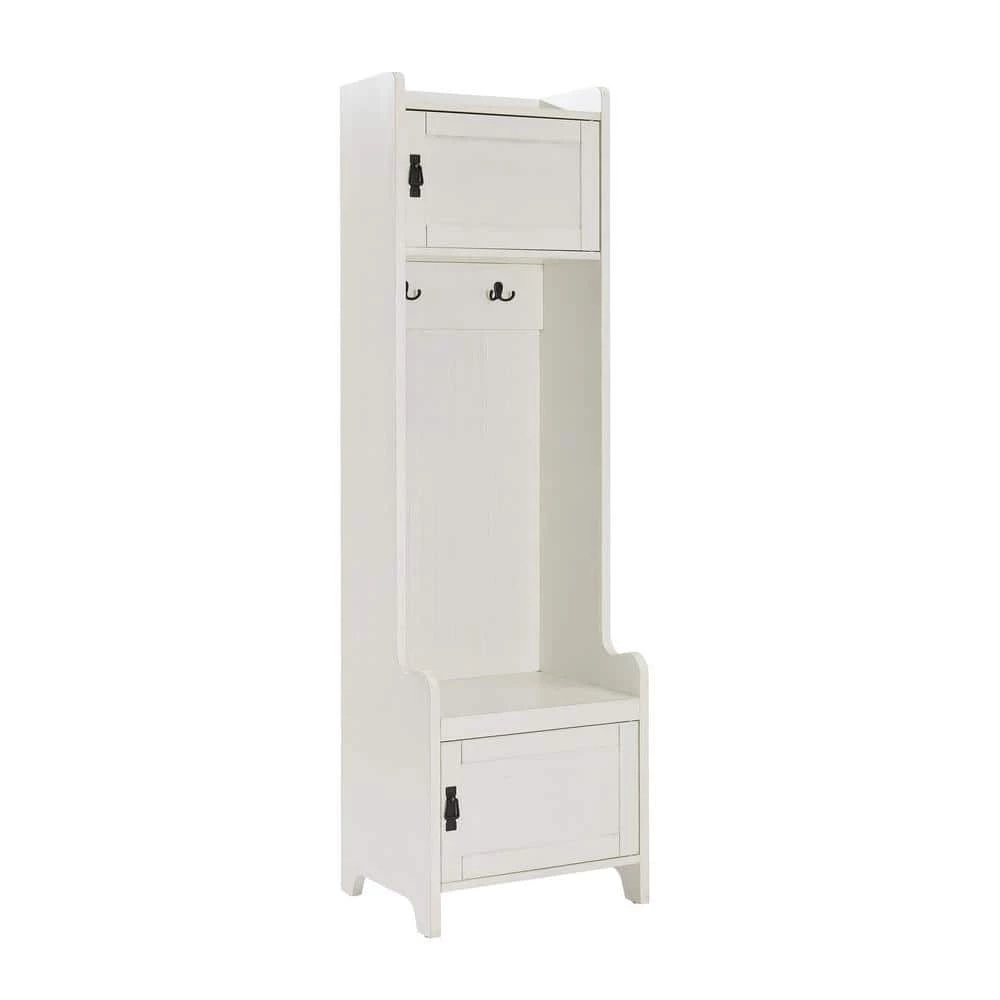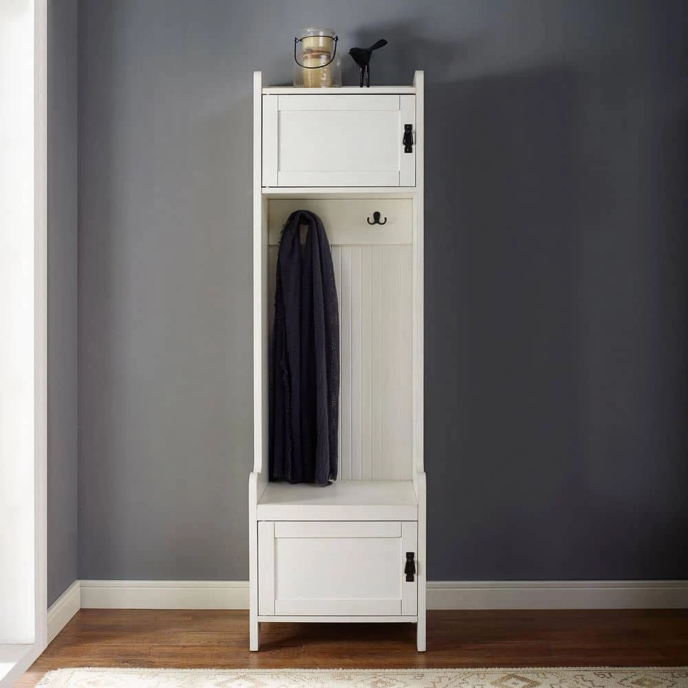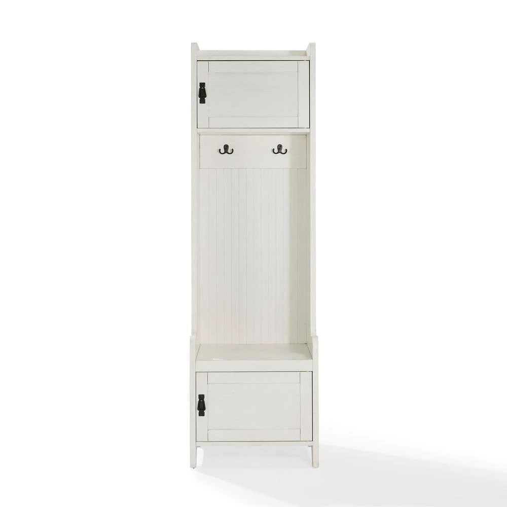 Add organization to your entryway with the Fremont Tower. The tower offers multiple coat hooks, an easy to slide storage cubby, an elevated swing door storage space, and top-shelf storage. The tower is easily paired with the rest of the Fremont Collection.