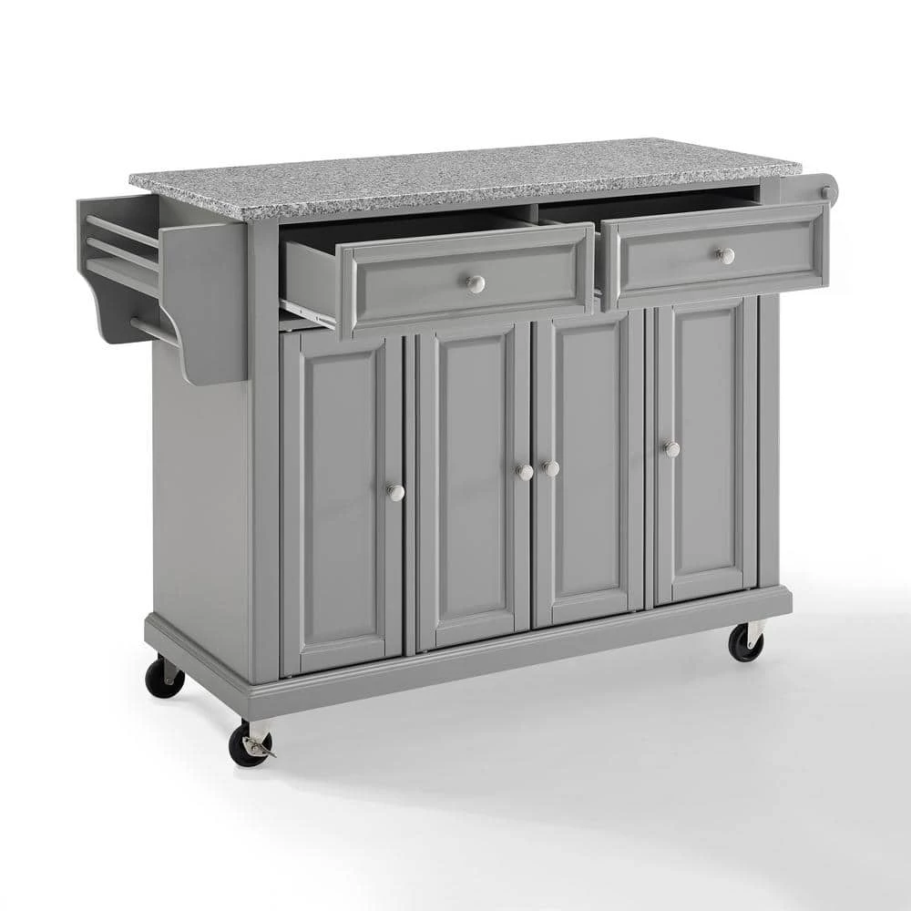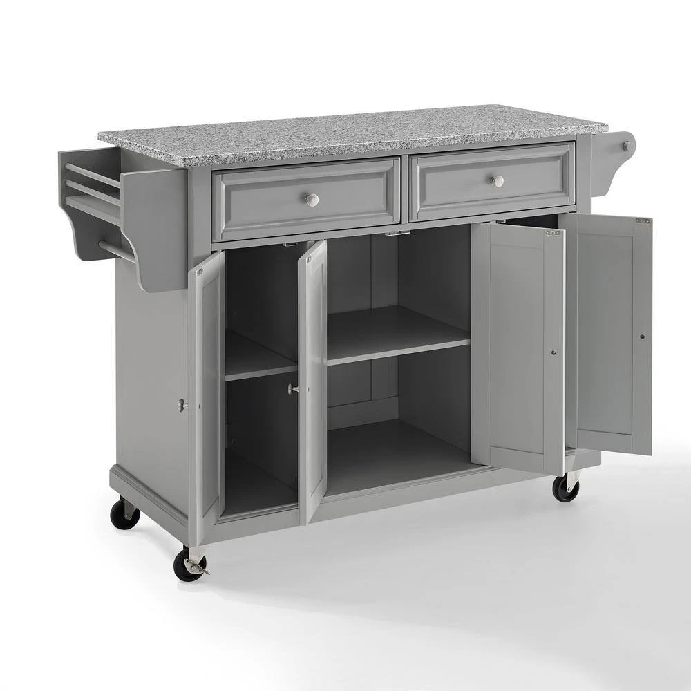 Constructed of solid hardwood and wood veneers, this mobile kitchen cart is designed for longevity. The beautiful raised panel doors and drawer fronts provide the ultimate in style to dress up your kitchen. 2-deep drawers are great for anything from utensils to storage containers. Behind the four doors, you will find adjustable shelves and an abundance of storage space for things that you prefer to be out of sight. The heavy-duty casters provide the ultimate in mobility. When the cabinet is where you want it, simply engage the locking casters to prevent movement. Style, function and quality make this mobile kitchen cart a wise addition to your home.