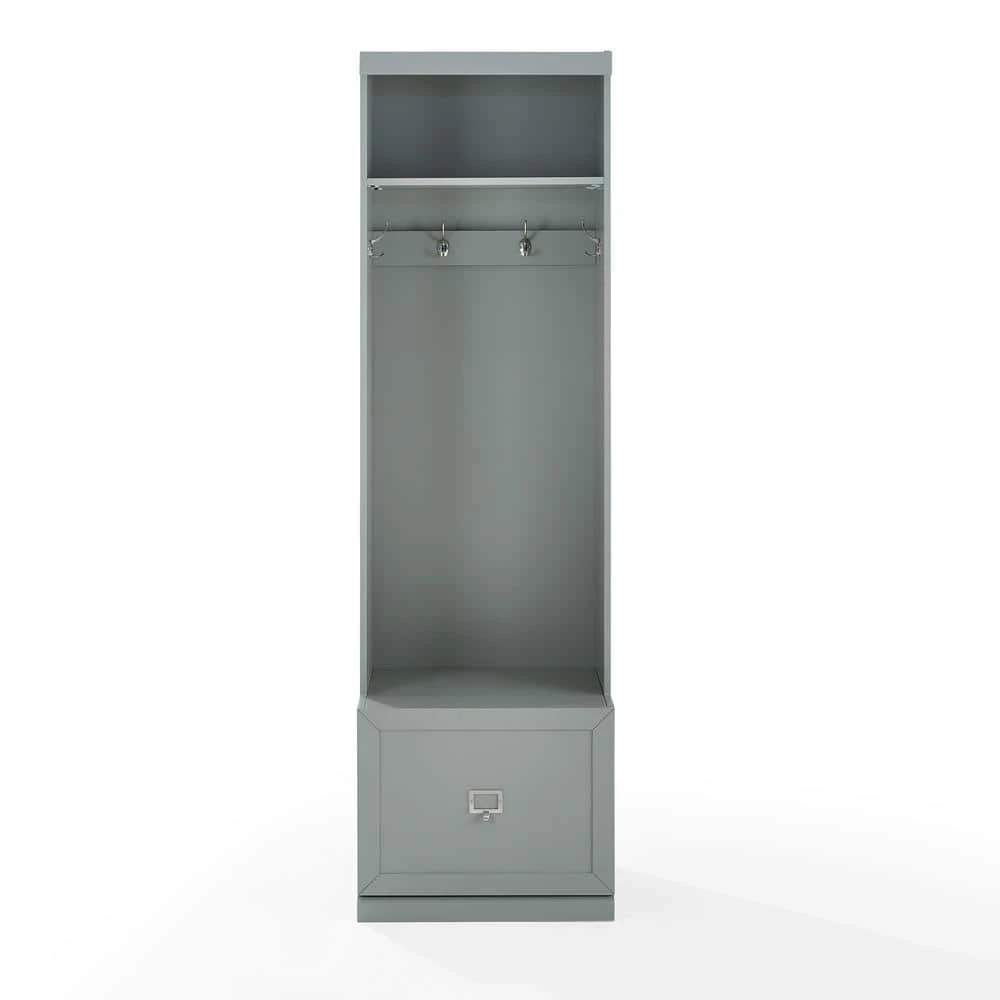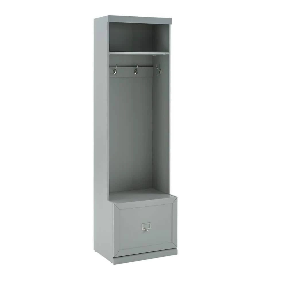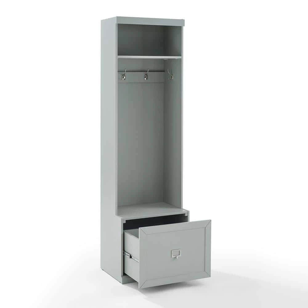 Embrace the beauty of an organized entryway with the Harper Hall Tree. Slimmer than a traditional hall tree, this tower has four large hooks for hanging coats, hats, and scarves. An open storage shelf on top and a full-extension drawer in the base make this tower more than a traditional coat rack. The label holder hardware on the storage drawer is customizable allowing for more personalized organization. Modular in design, the Harper Hall Tree can be paired with a variety of items within the collection.