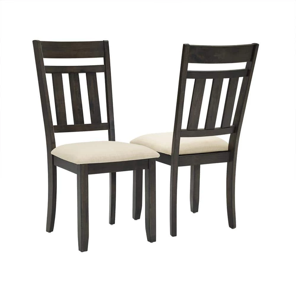 The Hayden Dining Chairs, with their modern farmhouse design, bring rustic style to family gatherings. Featuring a slat back and upholstered seat, this dining chair adds comfort and charm to your dining space. The sturdy construction of the Hayden Dining Chairs will provide dining enjoyment for years to come.