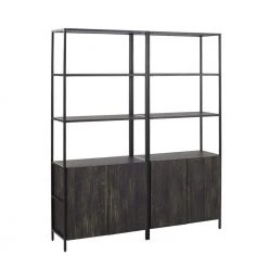 Bring an industrial edge to home organization with the Jacobsen 2-piece Etagere Set. Each unit has 2-spacious stationary shelves, providing open storage with a sleek profile. Anchoring each base is a large storage cabinet ideal for tucking away everyday items you want out of sight. At home in your family room or home office, the Jacobsen 2-piece Etagere Set is a standout with its mix of sturdy steel and the look of rustic wood.