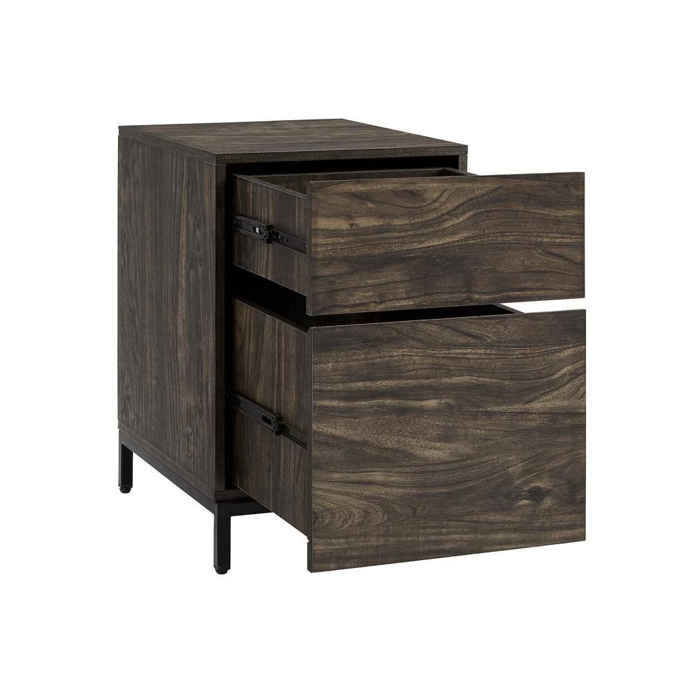 Give your home office a modern edge with the Jacobsen File Cabinet. A beautiful combination of faux wood and metal, this file cabinet features a large drawer with rails for hanging files and a full-extension drawer. Add the Jacobsen File Cabinet to any room for streamlined storage or pair it with other pieces of the collection for a cohesive industrial look.