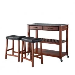 Cherry Kitchen Cart with Granite Top and Stools by CROSLEY FURNITURE