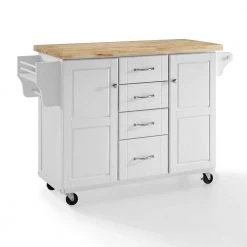 Savannah White with Wood Top Compact Kitchen Island by CROSLEY FURNITURE