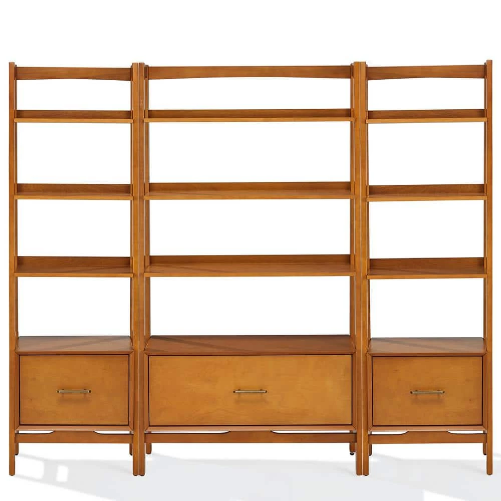 Taking cues from mid-century modern design, the Landon 3-Piece Etagere Set features a sturdy wood frame and a total of nine open shelves. Three spacious office style drawers are seated on full extension glides giving access to every corner and making office organization a breeze. Ideal for books and other decor, the Landon 3-Piece Etagere Set delivers a classic storage solution with modern flair.