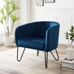 Parkway Navy Velvet Barrel Chair by CROSLEY FURNITURE
