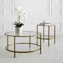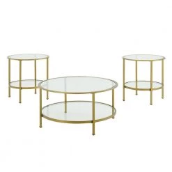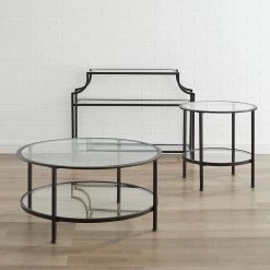 Aimee 3-Piece Oil Rubbed Bronze Round Glass Coffee Table Set with Shelf by CROSLEY FURNITURE