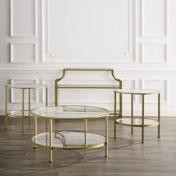 Aimee 4-Piece Oil Rubbed Bronze Round Glass Coffee Table Set with Shelf by CROSLEY FURNITURE