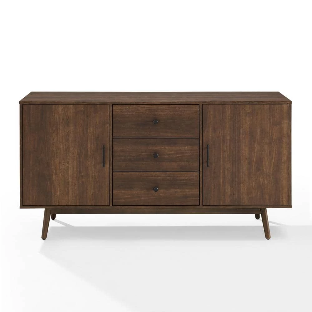 The Lucas Sideboard showcases mid-century modern design at its best. Featuring two spacious cabinets with adjustable shelves, this console stores anything from dishes to precious vinyl. Three deep storage drawers at the center of the console sit on smooth rolling metal glides, while the spacious top is the perfect perch for your favorite record player. The clean lines of the Lucas Sideboard offer simple elegance and versatility, perfect for any room of your home.