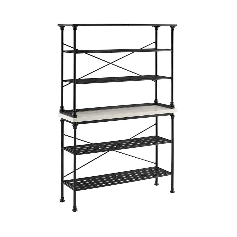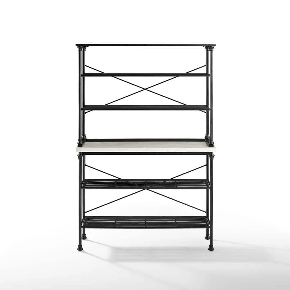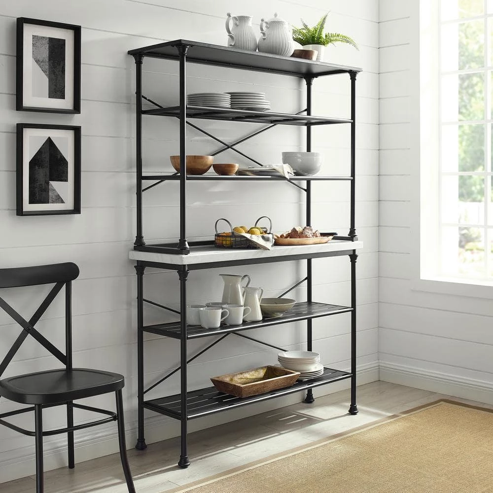 Inspired by the French industrial revival, the Madeleine Baker’s Rack Set brings a stylish aesthetic to your home with its faux marble top and steel base. Featuring open spacious shelving on the hutch and base, the sleek profile of this baker’s rack offers function without overpowering your space. Add the Madeleine Bakers Rack to your dining room or kitchen for an instant upgrade to your home dcor.