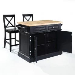 Oxford Black Kitchen Island with X-Back Stools by CROSLEY FURNITURE