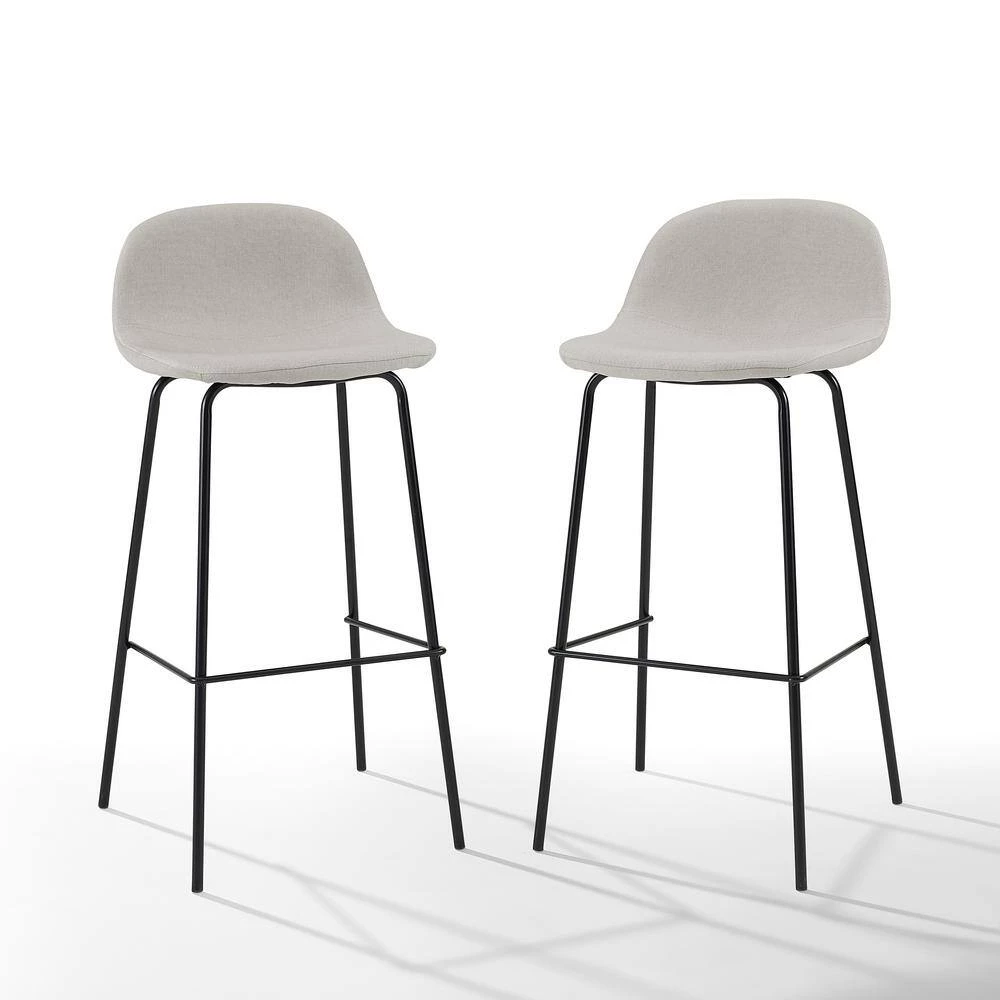 The Riley 2-Piece Bar Stool Set combines modern and industrial aesthetics, creating versatile seating for a kitchen or dining area. Featuring upholstered bucket style seats on tapered steel legs, these stools offer comfort and a sleek footprint. Pair the Riley bar stools with a rustic bar height table or a contemporary breakfast bar for an instant dining upgrade.