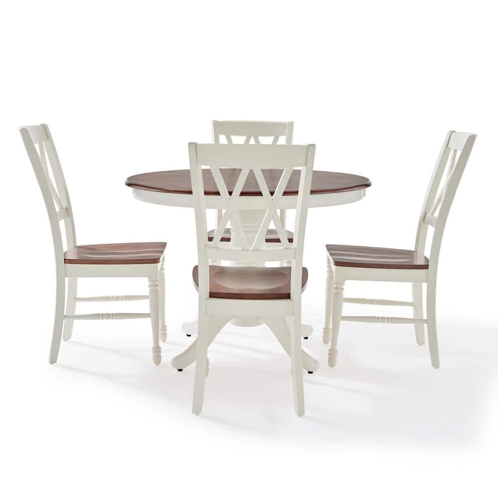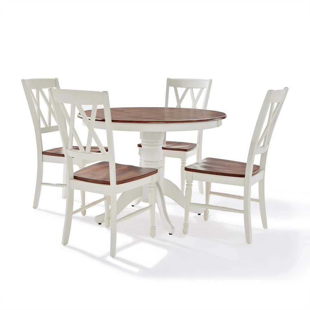 Ideal for an eat-in kitchen or dining room, the Shelby 5 Piece Round Dining Set was designed with tradition in mind. Featuring sturdy wood construction with classic turned legs, the Shelby Dining Set can pair with design aesthetics ranging from farmhouse to traditional. The open x-back chairs and pedestal base provide comfortable seating for four.