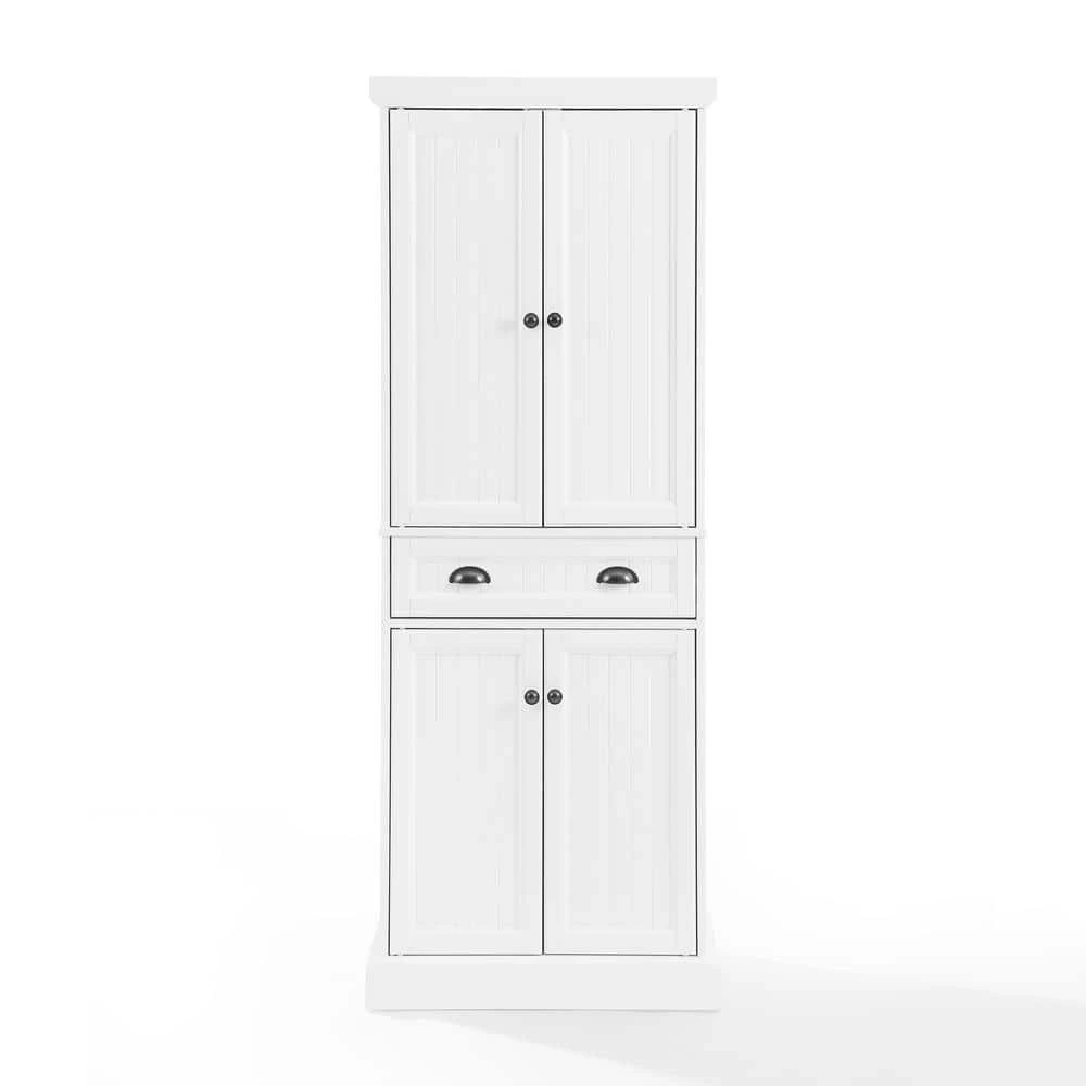 With charming beadboard details, the Shoreline Pantry provides a dash of coastal flair to home organization. 2-cabinets with adjustable shelving and a large drawer between them offer storage for a variety of household items. At home in a kitchen, dining room or common area, the Shoreline Pantry is sure to be a welcome addition to your home.
