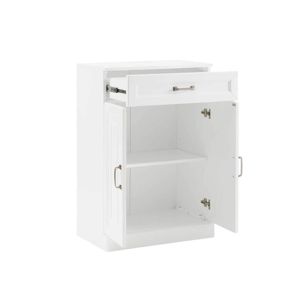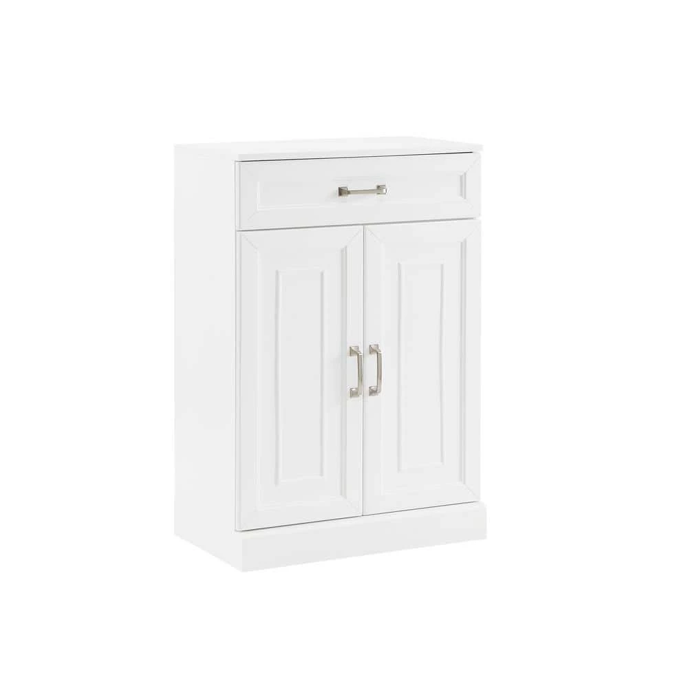 The Stanton Storage Cabinet combines classic styling with the versatility of modular design. Featuring an adjustable shelf plus a full-extension drawer, this cabinet is great for organizing smaller spaces. Panel doors on the cabinet keep everyday items out of sight, while the modularity of the Stanton Storage Cabinet allows it to mix with other items in the collection for customizable larger-scale storage.