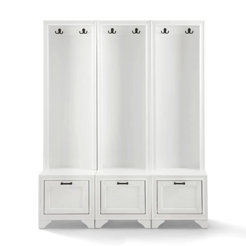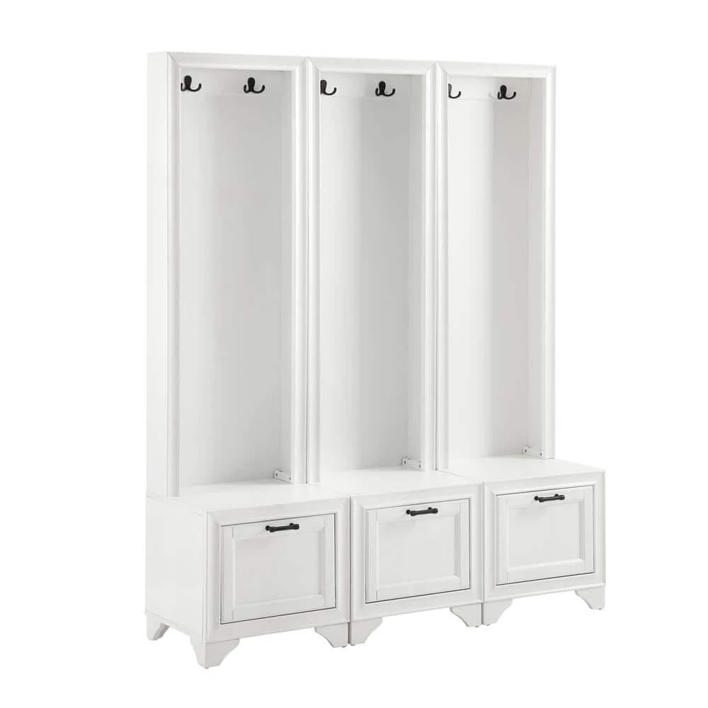 The Tara 3-piece Entryway Set combines three hall trees together to offer optimal space for your foyer or mudroom. The sleek profile of the set offers six double prong hooks for hanging coats, scarves and bags. The three lower compartments have hinged doors with magnetic closures perfect for tucking away shoes at the end of the day. Each cabinet base creates a seating area or landing zone, making the Tara 3-piece Entryway Set your go-to for entryway organization.