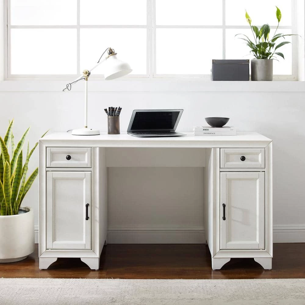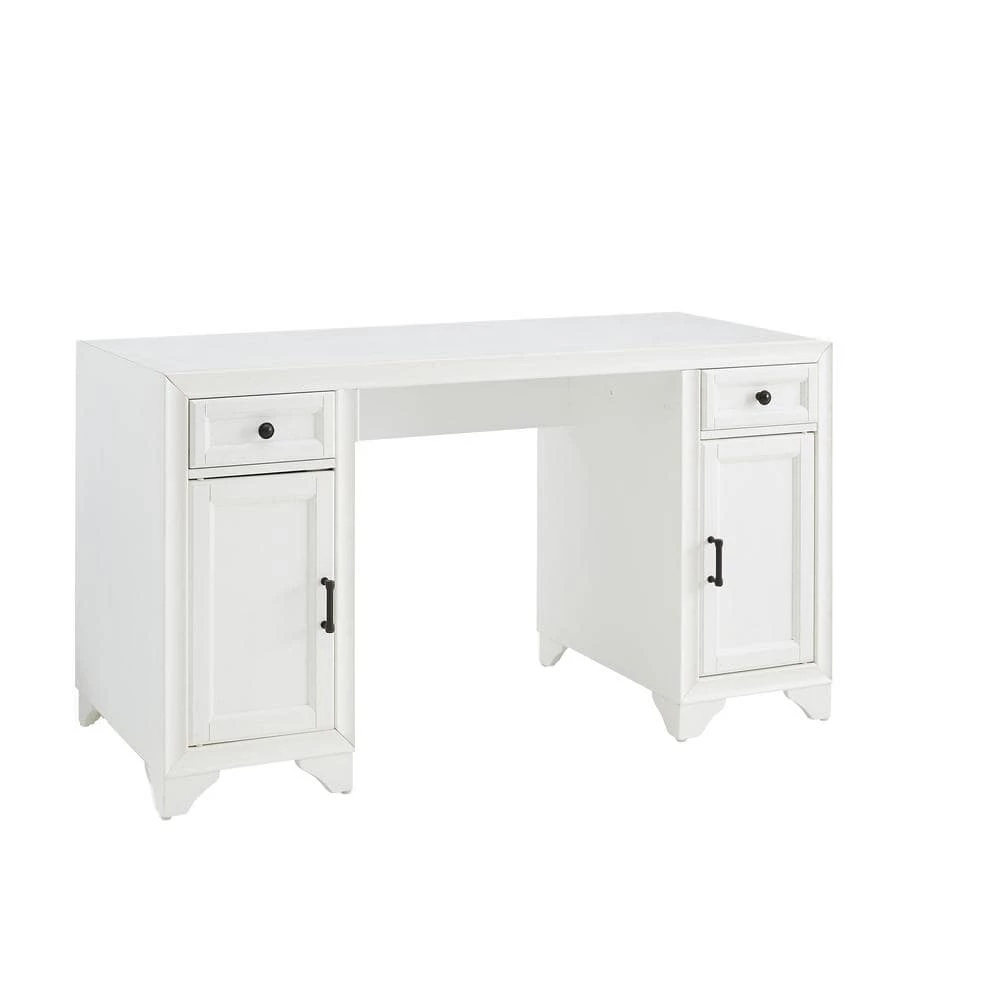 The Tara Desk adds much-needed workspace and storage to your family command center. Featuring two large cabinets with adjustable and removable shelves, plus two full-extension drawers for smaller items, this desk is a great addition to your home office or family room. With a simple and classic design, the Tara Desk complements a variety of decor options.