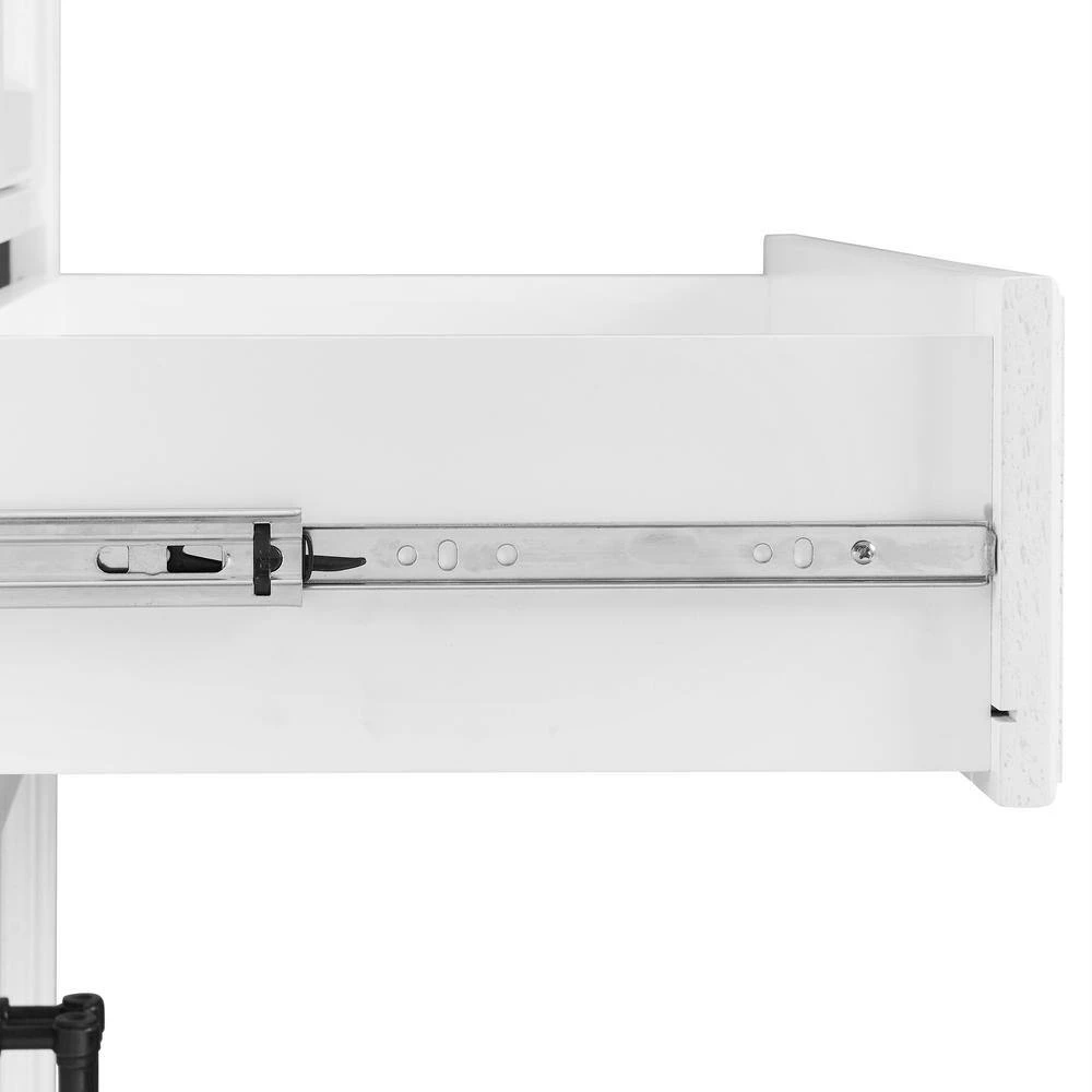 - Each tall cabinet features a full-extension storage drawer on ball-bearing glides