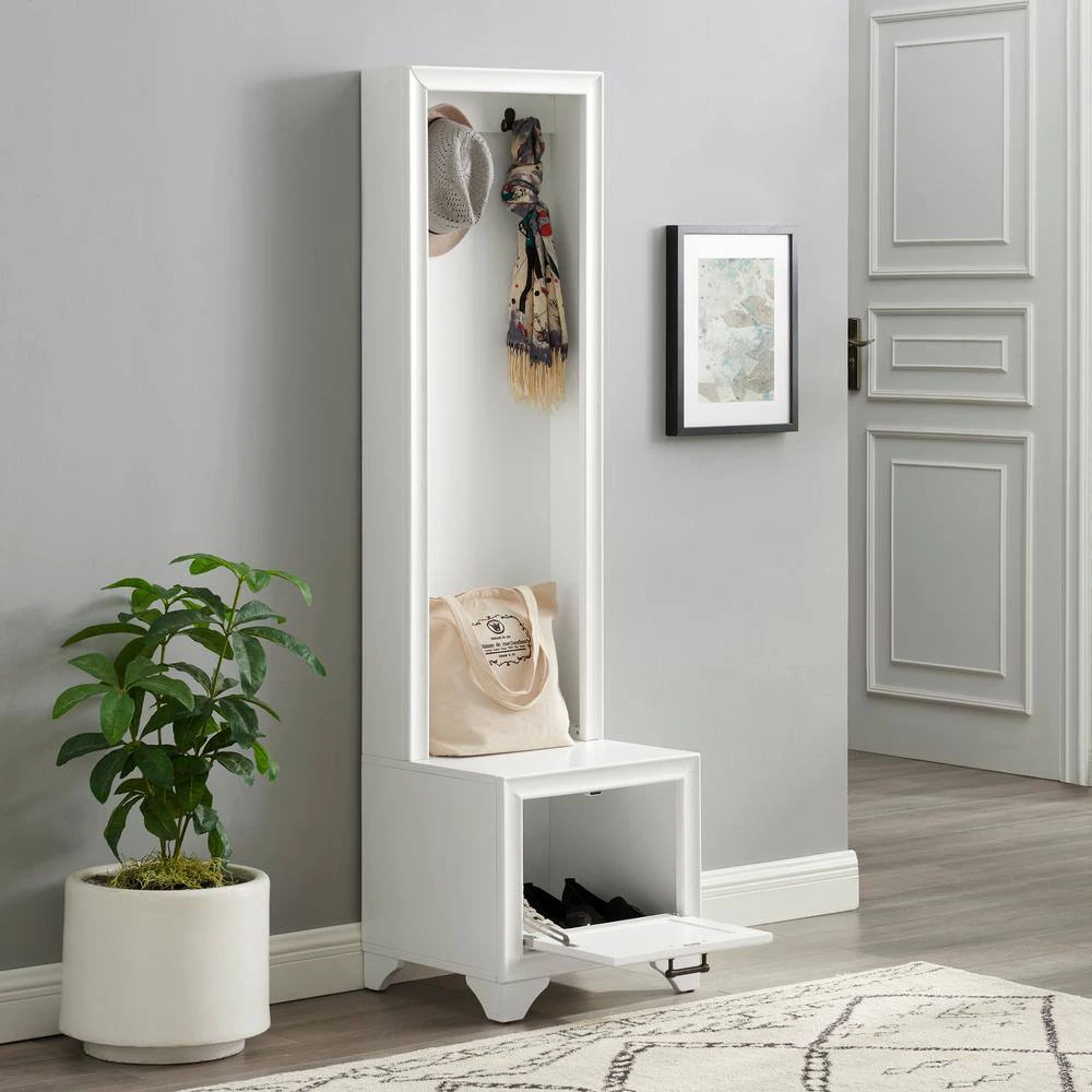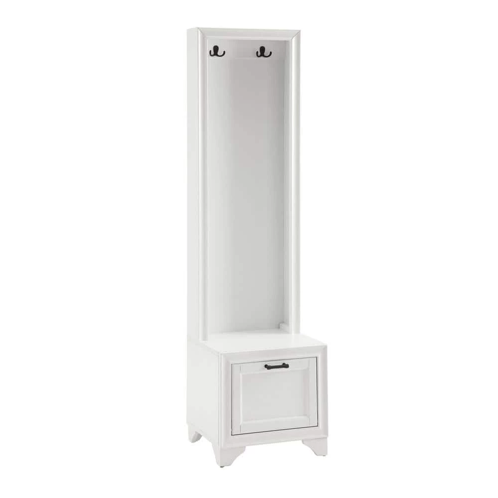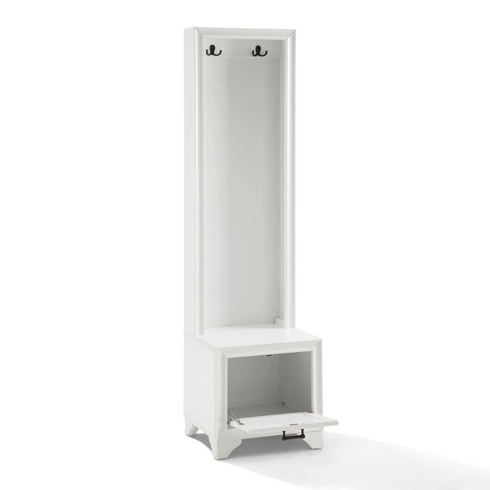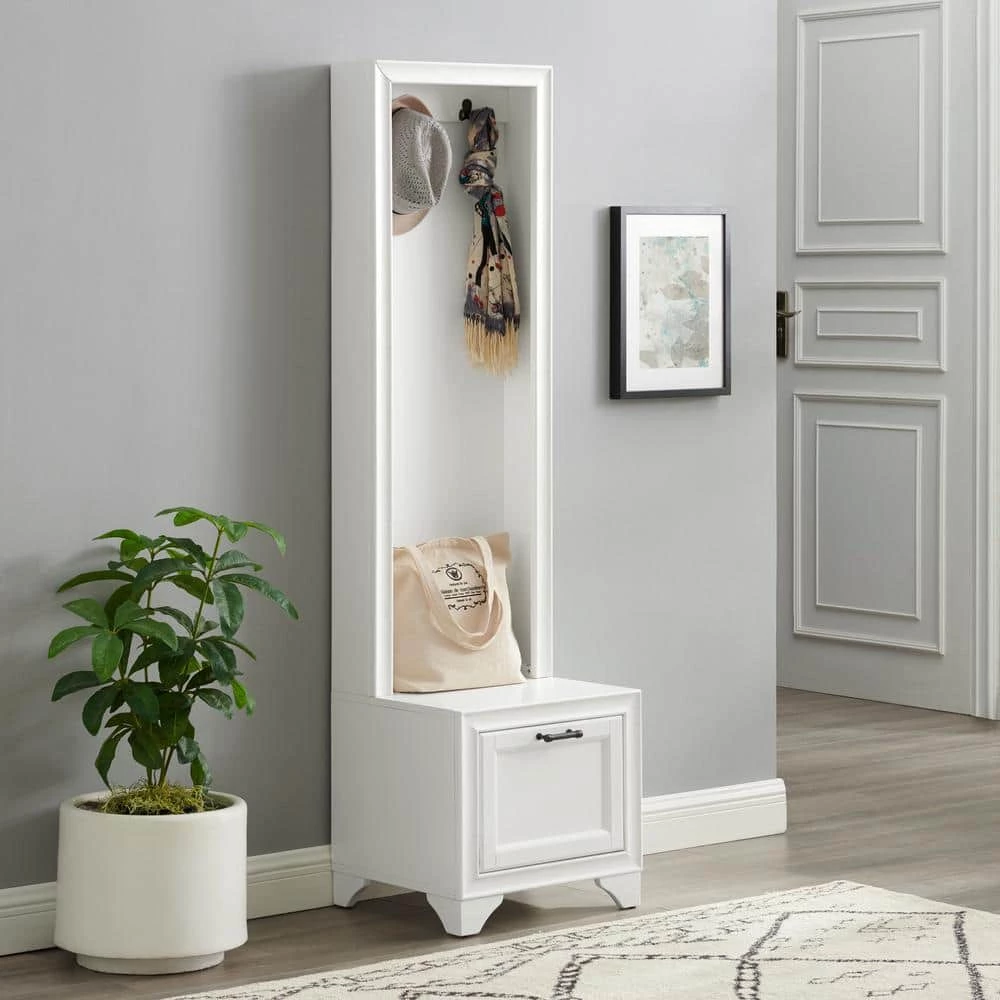 Space conscious and stylish, the Tara Hall Tree adds much-needed storage to small entryways. The slender profile offers two double prong hooks for hanging coats, hats and book bags. A spacious lower compartment has a hinged fold-down door with magnetic closure just right for storing shoes at the end of the day. The lower cabinet also creates a seating area or landing zone, making the Tara Hall Tree your go-to for home organization.