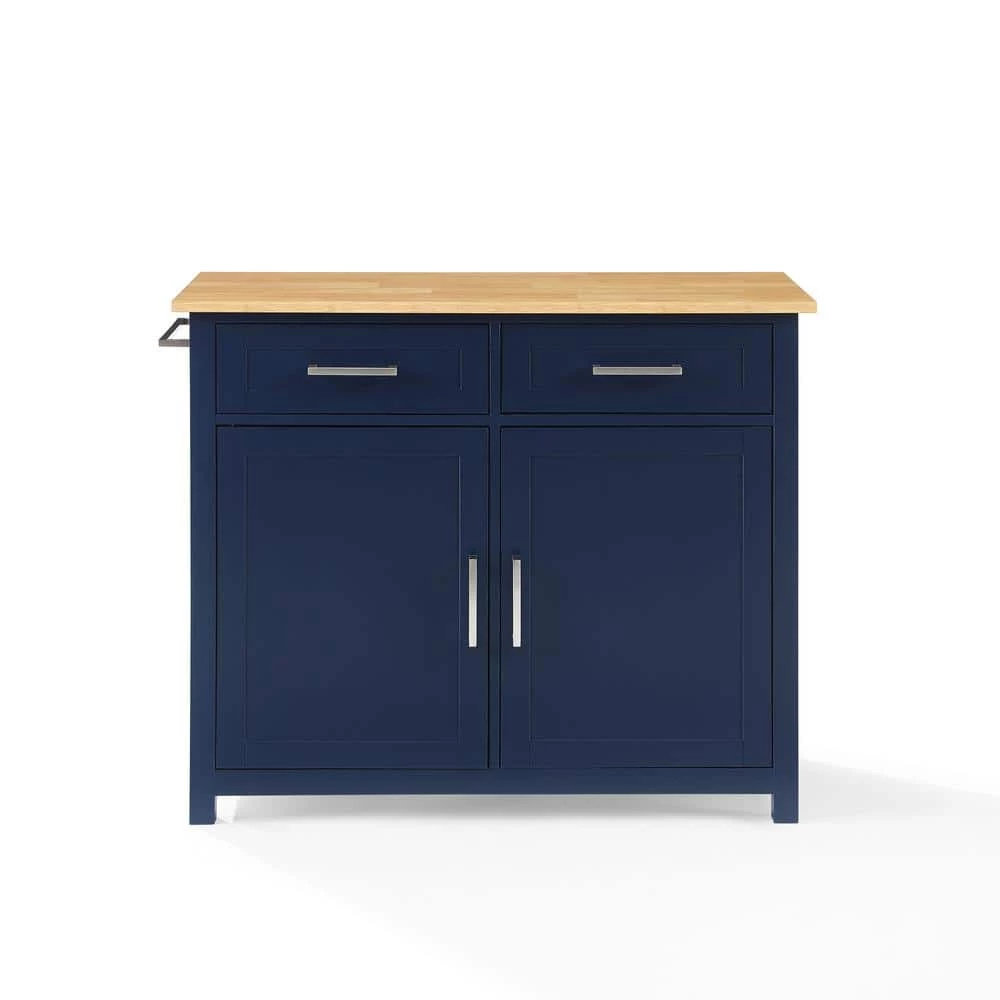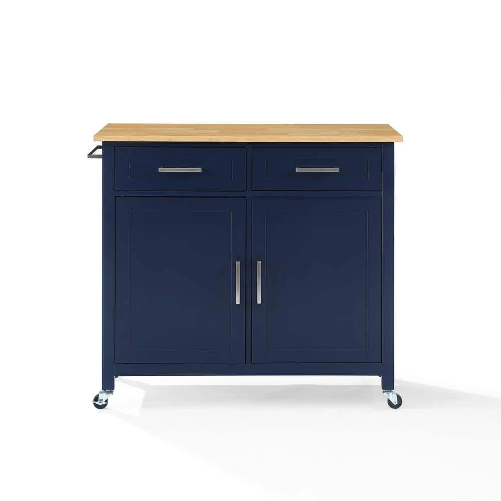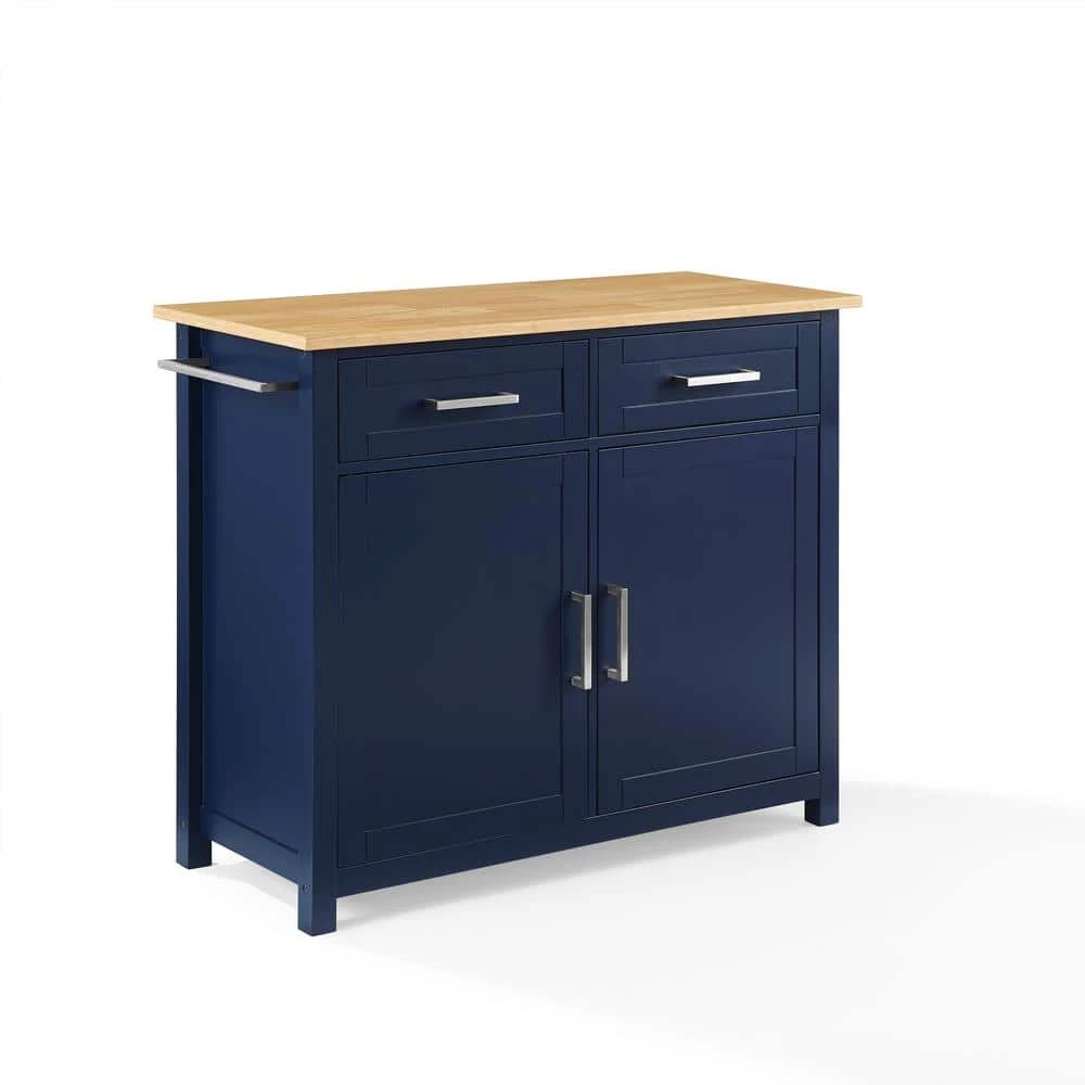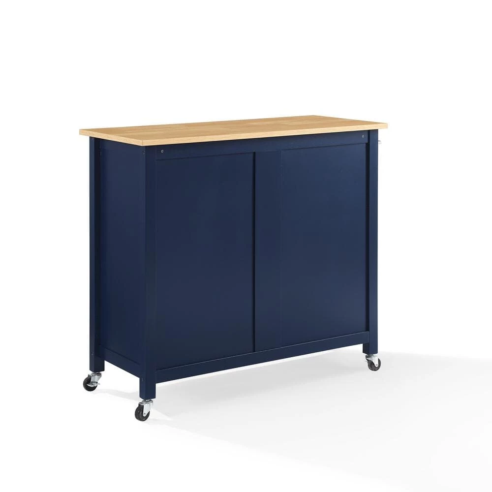 The Tristan Kitchen Island/Cart offers classic style and ample storage. Two large cabinets with adjustable shelving provide flexibility for storing kitchen essentials like pots and pans, while the storage drawers are ideal for corraling utensils and flatware. A large countertop and towel bar create a convenient workspace. Optional caster wheels allow the Tristan Kitchen Island/Cart to go mobile and adapt to any kitchen space.
