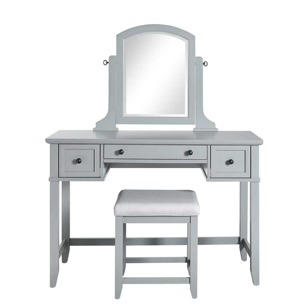 Simple and traditional, the vista vanity set from CROSLEY offers the perfect view for getting ready for the day. Constructed from solid hardwood and veneers with brushed nickel hardware, the classic silhouette of the vista complements any decor. Have a seat on the matching leatherette stool, pull up to the generous countertop and adjust the beveled glass mirror to the perfect angle. The 3- easy gliding drawers are ample for holding makeup, grooming tools or fragrances.